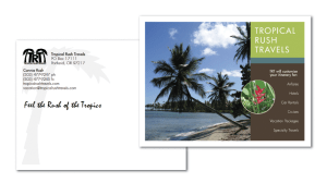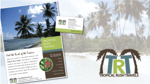 the whole package. The products created for Tropical Rush Travels are a great example of the start of a small business starting out on the right foot. We collaborated on a logo design, which then provided the center of which all the other products revolved. Attractive business cards, letterhead, thank you cards and flyers gave Tropical Rush Travels an advantage from the beginning.